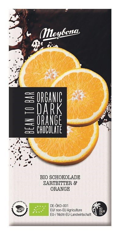 CZEKOLADA GORZKA Z CHRUPIĄCYMI GRANULKAMI POMARAŃCZY BIO 100 g – MEYBONA