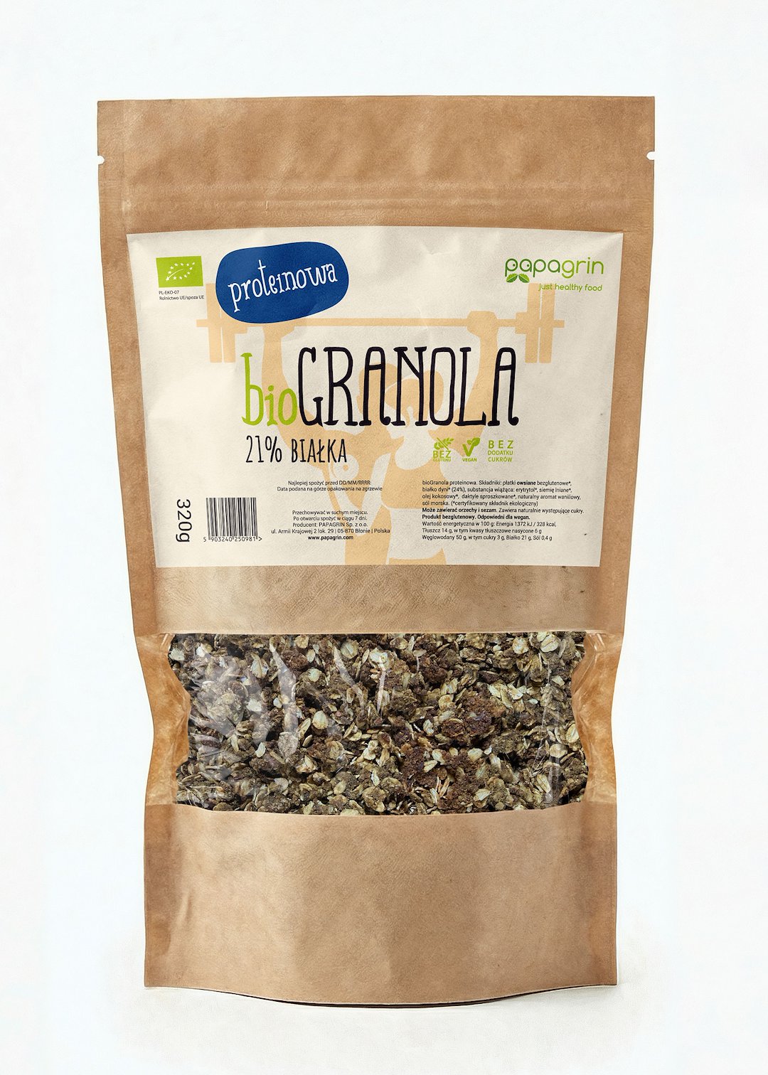 GRANOLA PROTEINOWA BEZ DODATKU CUKRÓW BIO 320 g – PAPAGRIN