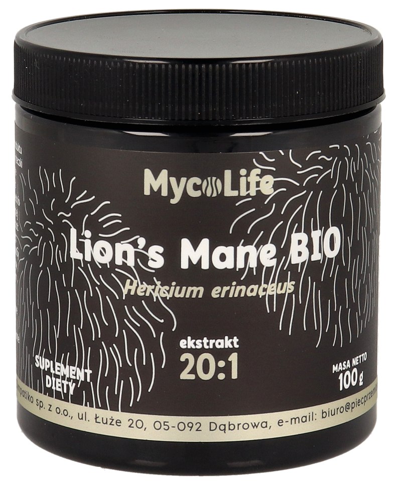 GRZYBY SOPLÓWKA JEŻOWATA (LION’S MANE) EKSTRAKT BEZGLUTENOWY BIO 100 g – PIĘĆ PRZEMIAN (MYCOLIFE)