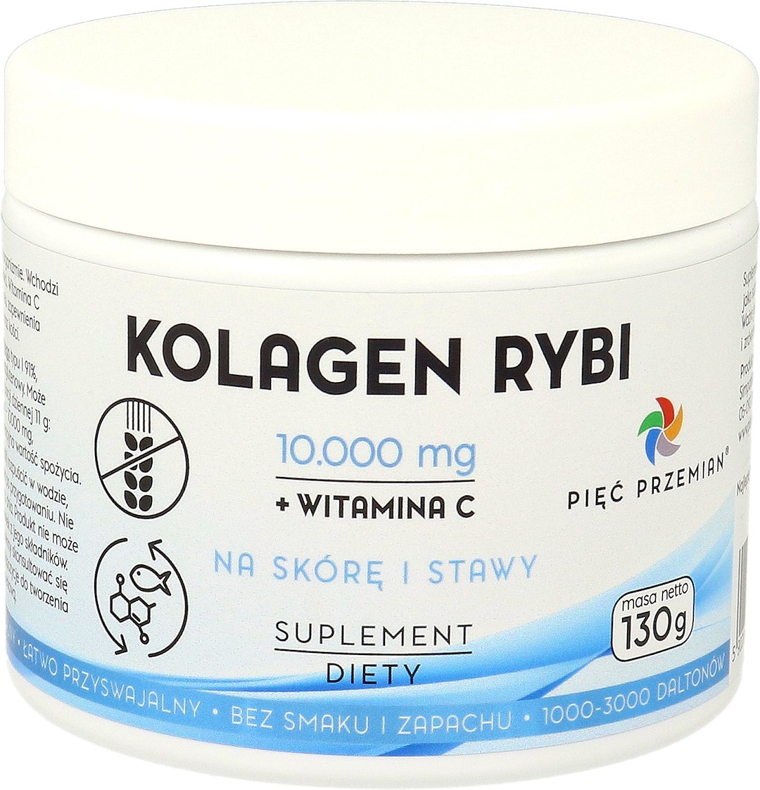 KOLAGEN RYBI + WITAMINA C W PROSZKU BEZGLUTENOWY 130 g – PIĘĆ PRZEMIAN