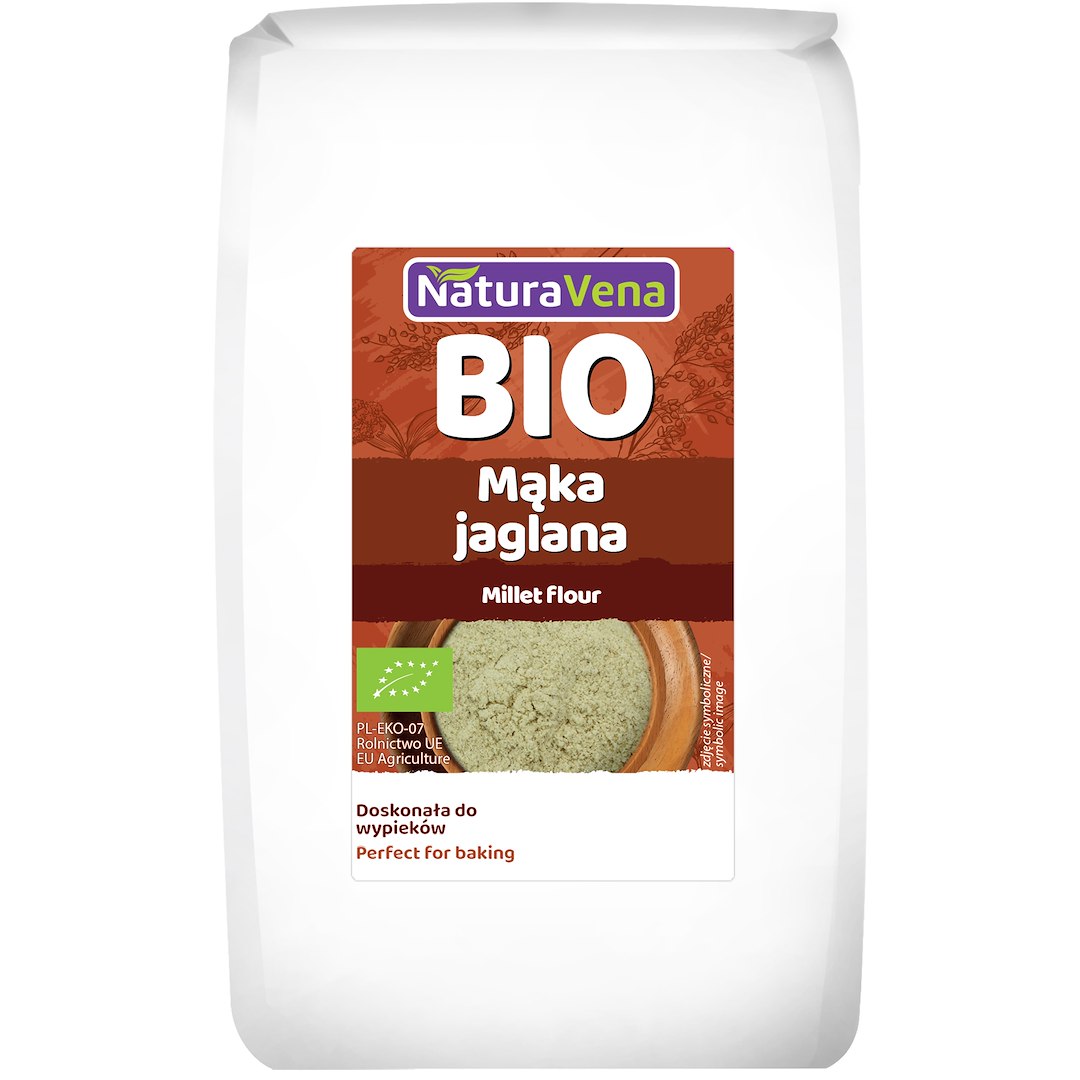 Ekologiczna mąka jaglana uzyskana z obłuszczonego ziarna prosa. Polecamy do wyrobu ciasteczek w połączeniu z mąką ryżową, także do naleśników i placków w połączeniu z mąką gryczaną. Doskonała również do zagęszczania potraw, gdyż nie tworzy grudek i ma neutralny smak.