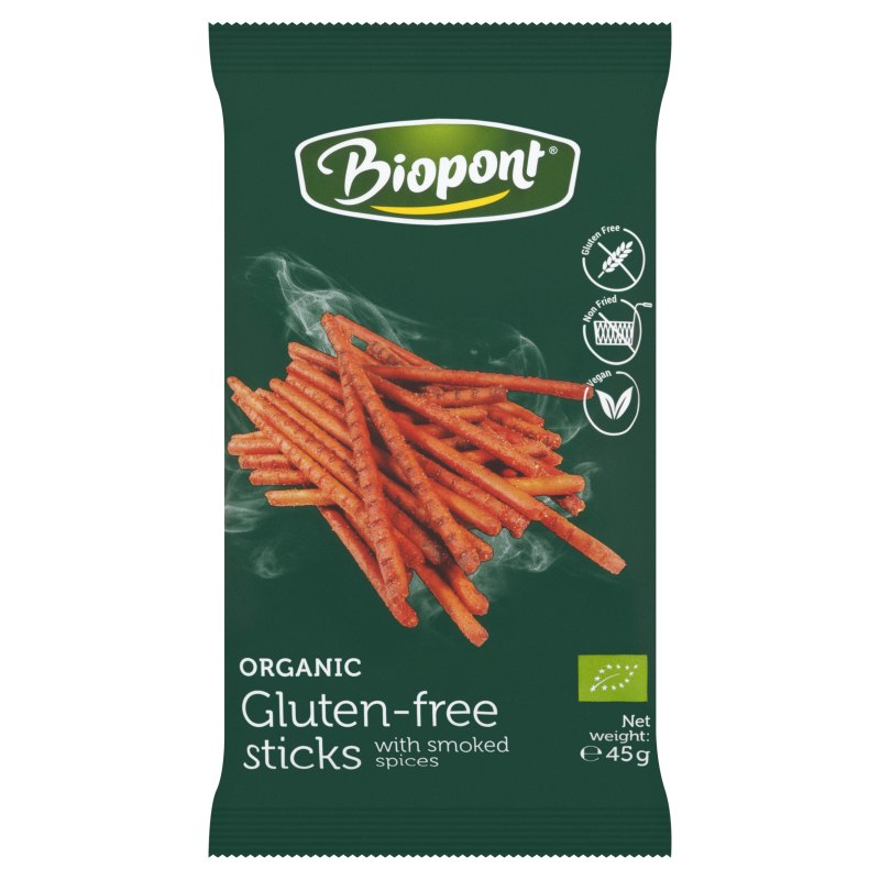 PALUSZKI O SMAKU PAPRYKI WĘDZONEJ BEZGLUTENOWE BIO 45 g – BIOPONT