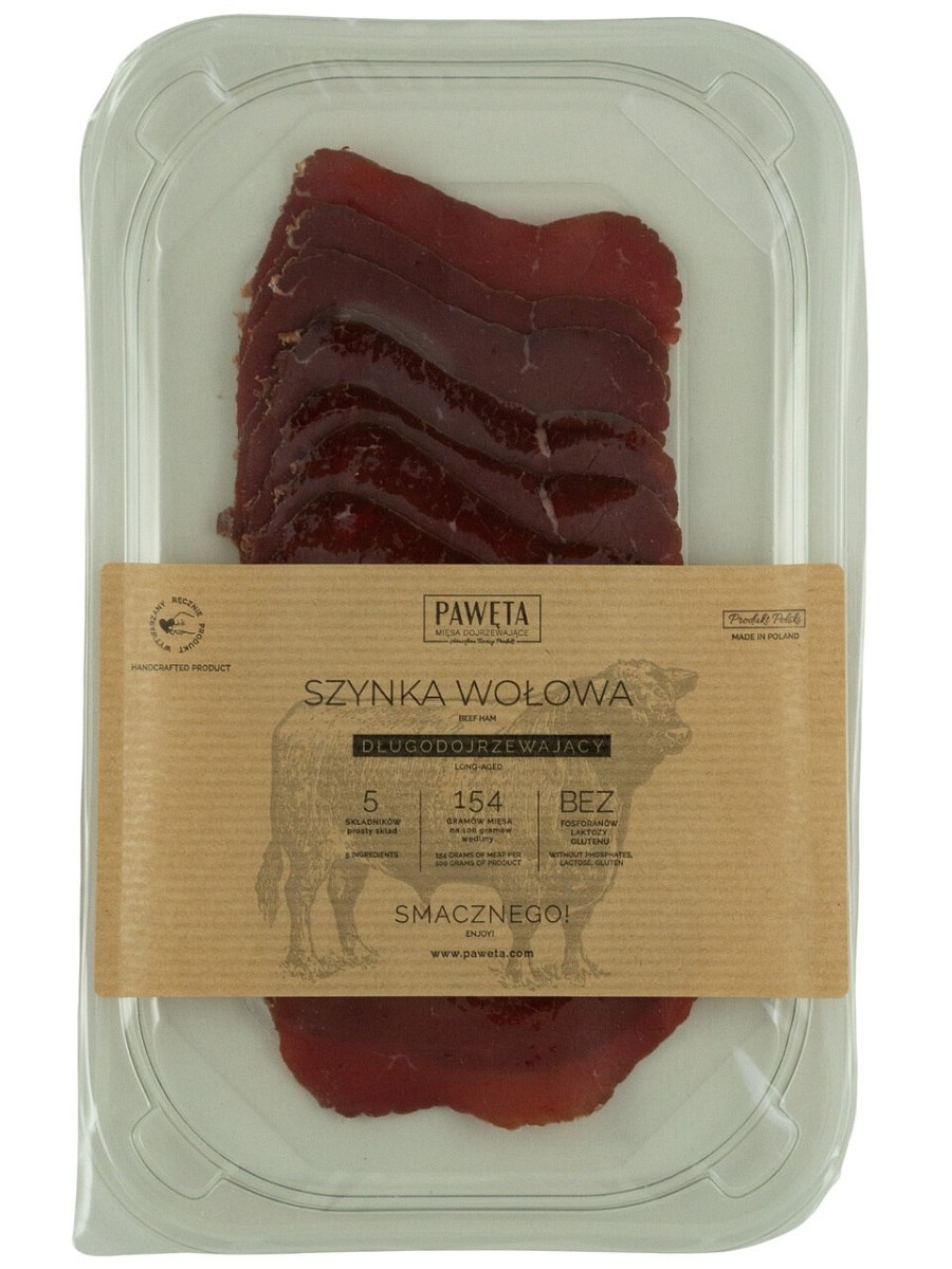 SZYNKA WOŁOWA DOJRZEWAJĄCA PLASTRY BEZGLUTENOWA 65 g – PAWĘTA