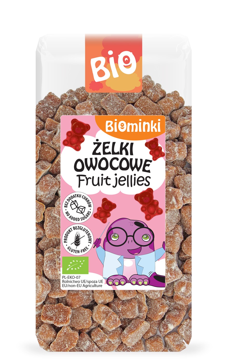 ŻELKI OWOCOWE BEZ DODATKU CUKRÓW BEZGLUTENOWE BIO 400 g – BIOMINKI