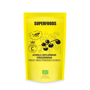 SKŁADNIKI ekologiczne owoce aceroli liofilizowane sproszkowane 100 %. OPISAcerola to niewielki, soczysty owoc o delikatnym, słodko-kwaśnym smaku przypominającym połączenie truskawki i limonki.Ekologiczne owoce aceroli poddano procesowi liofilizacji, dzięki czemu zachowane są niemal wszystkie wartości odżywcze.Polecamy jako dodatek do kefirów, jogurtów, soków, smoothie, deserów, owsianek, sałatek. Acerola sproszkowana liofilizowana zawiera wysoką zawartość witaminy C, która pomaga…