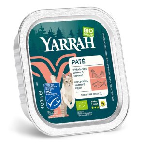 SKŁADNIKI***2 x Pasztet z łososiemSkładniki: mięso i produkty pochodzenia zwierzęcego* [37 % kurczak* (mięso*, tusza*, serca*, nerki*, wątroba*)], 36 % rosół* [woda, produkty pochodzenia roślinnego* (lubczyk*), mięso i produkty pochodzenia zwierzęcego* (mączka z kurczaka*, 15 % płuca wołowe*), ryby i produkty rybne** (4 % ŁOSOŚ**), glony* (0,5 % suszone wodorosty*), substancje mineralne. (*certyfikowany składnik ekologiczny,…