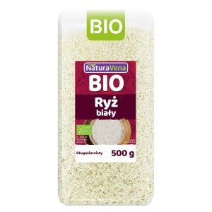 SKŁADNIKI ekologiczny ryż biały okrągły 100 %. SPOSÓB PRZYGOTOWANIA:uprzednio wypłukany ryż gotować w proporcji 1:2 (1 porcja ryżu na 2 porcje wody) na małym ogniu ok. 25 min. Wartość odżywcza w 100 gWartość energetyczna: 1481 kJ/349 kcalTłuszcz: 0,5 gw tym kwasy tłuszczowe nasycone: 0,2 gWęglowodany: 79 gw tym cukry: 0,2 gBłonnik: 1,1 gBiałko: 6,5 gSól:…