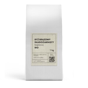 SKŁADNIKIekologiczny ryż brązowy długoziarnisty 100 %. OPISSposób przygotowania: uprzednio wypłukany ryż gotować w proporcji 1:2 (1 porcja ryżu na 2 porcje wody) na małym ogniu ok. 35 minut. Wartość odżywcza w 100 g Wartość energetyczna 1526 kJ/360 kcalTłuszcz 3,4 gw tym kwasy tłuszczowe nasycone 0 gWęglowodany 73 g w tym cukry 0 g Błonnik 2,5 g Białko 8,2 g Sól 0,02 g ZALECANE WARUNKI…
