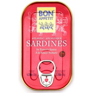 SKŁADNIKISARDYNKI (65 %), pomidory (30 %), olej słonecznikowy, pikantne papryczki chilli (0,5 %) sól. OPISZnak towarowy Bon Appetit słynie z wysokiej jakości ekskluzywnych przetworów rybnych, w szczególności tuńczyków i sardynek. Marka należy do firmy COFACO AÇORES, która posiada swe zakłady przetwórcze na wyspach archipelagu Azorów na środku Oceanu Atlantyckiego. Wody opływające ten niewielki archipelag charakteryzują…