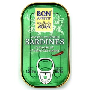 SKŁADNIKISARDYNKI (70 %), oliwa z oliwek (28,4 %), sól, pikantne papryczki chili (0,5 %), naturalny aromat chili (0,1 %). OPISZnak towarowy Bon Appetit słynie z wysokiej jakości ekskluzywnych przetworów rybnych, w szczególności tuńczyków i sardynek. Marka należy do firmy COFACO AÇORES, która posiada swe zakłady przetwórcze na wyspach archipelagu Azorów na środku Oceanu Atlantyckiego. Wody…