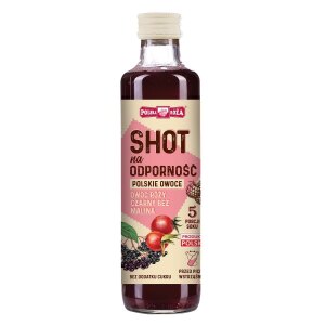 SKŁADNIKIsok NFC z owoców róży 40 %, soki roślinne 40 % (sok NFC z kłączy imbiru 40 %, sok NFC z kłączy kurkumy 40 %, sok NFC z cytryny), woda. OPISShot na odporność to mieszanka soków owocowych i roślinnych. Bez dodatku cukrów. Zawiera naturalnie występujące cukry. Produkt pasteryzowany. Witamina C pochodzi wyłącznie z wytłoczonych owoców…