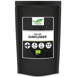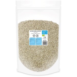 SKŁADNIKIekologiczny słonecznik łuskany 100 %. OPISEkologiczne ziarno słonecznika doskonałe jako samodzielna przekąska oraz jako wzbogacający smakowo dodatek do wypieków, deserów, musli i sałatek. Wyśmienicie smakuje uprażony na patelni. WARTOŚĆ ODŻYWCZA W 100 gWartość energetyczna 2537 kJ/613 kcalTłuszcz 52 gw tym kwasy tłuszczowe nasycone 4,5 gWęglowodany 11 gw tym cukry 2,6 gBłonnik 8,6 gBiałko 21 gSól…