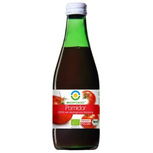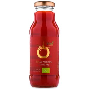 SKŁADNIKI bezpośrednio tłoczony sok z pomidorów*. (*certyfikowany składnik ekologiczny) OPIS Sok ten uzyskuje się poprzez bezpośrednie tłoczenie soku z pomidorów oraz pasteryzację. WARTOŚĆ ODŻYWCZA W 100 g Wartość energetyczna: 71 kJ/17 kcal Tłuszcz: 0,1 g w tym kwasy tłuszczowe nasycone: 0,02 g Węglowodany: 2,9 g w tym cukry: 2,8 g Błonnik: 0,2 g Białko: 0,8…