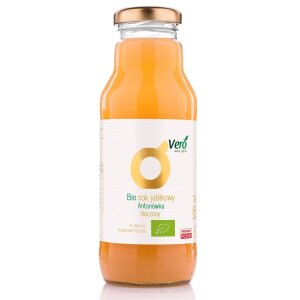 SKŁADNIKI bezpośredni sok z jabłek* 100 %(*certyfikowany składnik ekologiczny) OPISSok bezpośrednio tłoczony NFC (nie z koncentratu), niefiltrowany, o niskiej temperaturze pasteryzacji. WARTOŚĆ ODŻYWCZA W 100 gWartość energetyczna – 190 kJ/45 kcalTłuszcz – 0 gw tym kwasy tłuszczowe nasycone – 0 gWęglowodany – 11 gw tym cukry – 11 gBiałko – <0,4 gSól – <0,2 g…