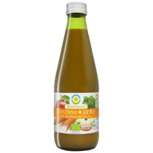 SKŁADNIKI bezpośrednio tłoczone soki z jabłek* (50 %), marchwi* (50 %)(*certyfikowany składnik ekologiczny) OPIS Sok ten uzyskuje się poprzez bezpośrednie tłoczenie soku z marchwi i jabłek oraz pasteryzację. WARTOŚĆ ODŻYWCZA W 100 g Wartość energetyczna: 167 kJ/40 kcal Tłuszcz: 0,5 g w tym kwasy tłuszczowe nasycone: 0,1 g Węglowodany: 8,8 g w tym cukry: 7,5…