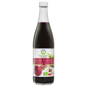SKŁADNIKI Sok z buraka odtworzony z zagęszczonego soku, przeciwutleniacz: kwas askorbinowy, regulator kwasowości: kwas cytrynowy. OPIS Sok z buraka polskiego o intensywnej czerwonej barwie, konsystencja klarowna, o lekko słodkawym smaku. Produkt zawiera naturalnie występujące cukry. Znajdujący się osad jest zjawiskiem naturalnym. Każdorazowo wstrząsnąć przed spożyciem. Produkt pasteryzowany. WARTOŚĆ ODŻYWCZA W 100 mlWartość energetyczna 191 kJ/…