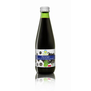 SKŁADNIKIbezpośredni sok aroniowy* 100 %. (*certyfikowany składnik ekologiczny) OPISSok bezpośrednio tłoczony NFC (nie z koncentratu) ze świeżych, ekologicznych aronii, pasteryzowany. Doskonały do bezpośredniego spożycia oraz jako dodatek do deserów i napojów. WARTOŚĆ ODŻYWCZA W 100 mlWartość energetyczna: 249 kJ/59 kcalTłuszcz: 0,1gw tym kwasy tłuszczowe nasycone: 0,1gWęglowodany: 14,6 gw tym cukry: 7,3 gBiałko: 0,2 gSól: 0,01…