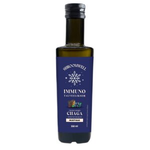 SKŁADNIKIekstrakt z chagą (55,8 %) [woda, owocniki chagi (Inonotus obliquus) (18 %), kwiaty krwawnika pospolitego (Achillea millefolium), pędy sosny zwyczajnej (Pinus sylvestris), ziele bylicy piołun (Artemisia absinthium), imbir lekarski (Zingiber officinale Roscoe) (0,1 %)], sok z czarnej porzeczki (Ribes nigrum) (28,2 %), miód (15 %), przeciwutleniacz (kwas askorbinowy). Składniki aktywne w porcji dziennej (50 ml)…