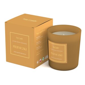 SKŁADNIKI 100 % Naturalny wosk SOJOWY bez GMO, kompozycja zapachowa, drewniany knot OPIS Jest to świeca dla wielbicieli zdecydowanych zapachów. Mieszanka wytrawnych i słodkich nut, takich jak: cynamon, imbir, goździk, syrop klonowy, to istna esencja zapachu świątecznego piernika! Korzenne aromaty z pewnością wypełnią cały dom i postawią na nogi wszystkich łasuchów. Zapach taki, że piernik…