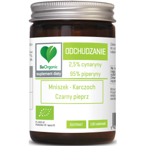 SKŁADNIKI ekstrakt z korzenia mniszka lekarskiego* (Taraxacum officinale F.H. Wigg.), ekstrakt z liścia karczocha zwyczajnego* (Cynara scolymus L.) standaryzowany na 2,5 % cynaryny, ekstrakt z czarnego pieprzu* (Piper nigrum L.) standaryzowany na 95 % piperyny, substancja wypełniająca: błonnik akacjowy*. (* certyfikowany składnik ekologiczny) Składniki w zalecanej dziennej porcji – 2 tabletkiEkologiczny ekstrakt z korzenia mniszka…