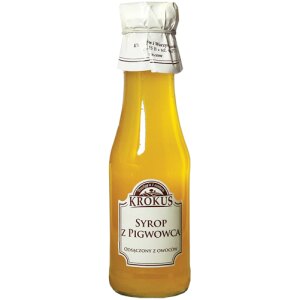 SKŁADNIKIsok z pigwowca (54 %), cukier. OPISProdukujemy syropy metodą naszych babć, to znaczy świeże owoce zasypujemy cukrem, a kiedy puszczą sok zlewamy go do butelek. W naszym syropie jest 54 % soku bezpośrednio tłoczonego (NFC) nie z koncentratu z pigwowca.Syrop jest intensywny i słodki, dlatego do picia proponujemy rozcieńczać go z wodą w stosunku 10:1….