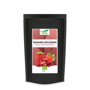 SKŁADNIKIekologiczna truskawka liofilizowana 100 %. OPISDzięki specjalnemu procesowi suszenia nasza truskawka chrupie! Chrupiąca truskawka to znakomita przekąska, ale także doskonale nadaje się jako dodatek do śniadania, sałatek czy deserów. Jej właściwości smakowe i zdrowotne sprawiają, że zyskują uznanie zarówno wśród miłośników zdrowego jedzenia, jak i tych, którzy poszukują niebanalnych smaków.Produkt pakujemy próżniowo, aby dłużej utrzymał…