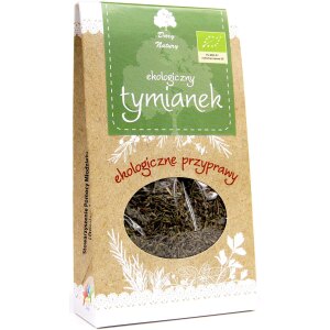 SKŁADNIKItymianek* 100% (*certyfikowany składnik ekologiczny) OPISTymianek jest przydatnym dodatkiem do wieprzowiny, baraniny, kaczki lub gęsi. Stosuje się go również do produkcji likierów i syropów. ZALECANE WARUNKI PRZECHOWYWANIA Przechowywać w suchym i chłodnym miejscu.