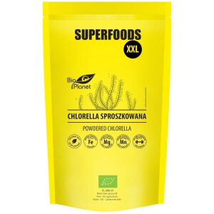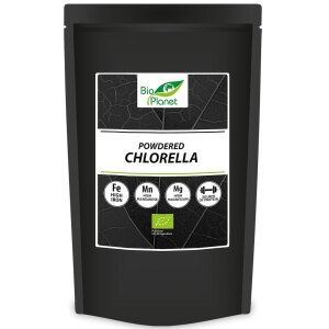 SKŁADNIKIekologiczna chlorella sproszkowana 100 %. OPISEkologiczna chlorella to rodzaj ciemnozielonej, słodkowodnej mikroalgi, która swoją nazwę zawdzięcza chlorofilowi – naturalnemu barwnikowi. Zalecane spożycie: 17 g dziennie tj. dwie miarki dołączone do produktu. Polecamy jako dodatek do kefirów, jogurtów, soków. Zawartość składników mineralnych w zalecanej do spożycia dziennej porcji produktu: magnez 60,35 mg (16 %*), mangan 0,88…