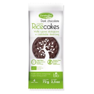 SKŁADNIKI61 % czekolada deserowa* [miazga kakaowa*, cukier trzcinowy*, tłuszcz kakaowy*, emulgator: lecytyny (z SOI*)], 39 % ryż brązowy*. (*certyfikowany składnik ekologiczny) OPISWafle ryżowe Lestello wytwarzane są w 100 % z naturalnego ryżu brązowego, polane prawdziwą czekoladą. Wafle ryżowe w czekoladzie deserowej nie zawierają glutenu dlatego mogą być spożywane przez osoby chorujące na celiakię i stosujące…