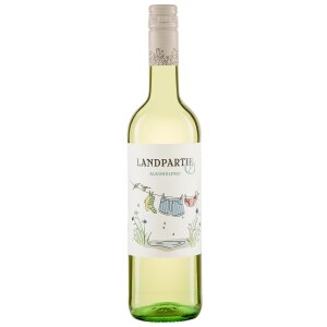 SKŁADNIKIwinogrona*, rektyfikowany zagęszczony moszcz winogronowy*, substancja konserwująca: DWUTLENEK SIARKI. (*certyfikowany składnik ekologiczny) OPISBezalkoholowa wersja Landparty jest zaskakująco bliska oryginałowi – harmonijna i owocowa, z delikatnymi nutami cytrusów i jabłka. Cuvée z białych odmian winogron został odalkoholizowany w sposób zachowujący aromaty. Temperatura serwowania: 6 – 8°C. WARTOŚĆ ODŻYWCZA W 100 mlWartość energetyczna: 126 kJ/30 kcalTłuszcz: 0…