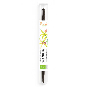 SKŁADNIKIekologiczna laska wanilii. OPISLaska wanilii to niezwykle intensywna, delikatna i lekko słodka przyprawa, nadająca potrawie niepowtarzalnych cech smakowych i zapachowych.Idealnie podkreśla smak i aromat deserów, ciast, babeczek, kremów, naleśników, puddingu, panna cotty, lodów oraz napojów alkoholowych. Świetnie komponuje się z cynamonem, goździkami i imbirem. W niewielkich ilościach sprawdza się jako dodatek do sosów i dań…