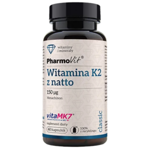 SKŁADNIKI Inulina, otoczka kapsułki: żelatyna, witamina K z natto (menachinon). Składniki w porcji dziennej – 1 kapsułkaWitamina K – 150 µg (200 % RWS)*Inulina – 285 mg *RWS – Referencyjne Wartości Spożycia OPIS Witamina K2 z natto 150 g to źródło witaminy K. Zawiera witaminę K w formie menachinonu 7, który powstaje w procesie biofermentacji…