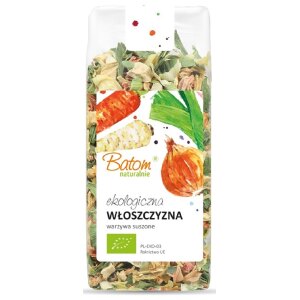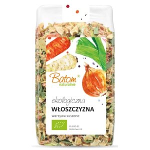 SKŁADNIKImarchew*, pietruszka korzeń*, por*, SELER korzeń*, cebula* (*certyfikowany składnik ekologiczny) OPISMieszanka warzyw suszonych to idealna podstawa do przygotowywania zup i sosów. SPOSÓB PRZYGOTOWANIAWłoszczyznę należy gotować 15 minut. INFORMACJA ALERGENNAMoże zawierać ZBOŻA ZAWIERAJĄCE GLUTEN, ORZECHY i sezam. ZALECANE WARUNKI PRZECHOWYWANIAPrzechowywać w suchym i chłodnym miejscu.
