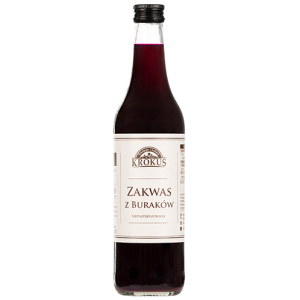 SKŁADNIKIwoda źródlana, burak czerwony 41 %, czosnek, sól, liść laurowy, ziele angielskie. OPISProdukt niepasteryzowany w ciągłej fermentacji. Podczas otwierania może ulec wzburzeniu. Bez dodatku cukrów. Zawiera naturalnie występujące cukry. Spożywać około pół szklanki dziennie, najlepiej na czczo lub po posiłku. Zakwas można pić na zimno lub po podgrzaniu do temperatury pokojowej (nie doprowadzać do wrzenia)….