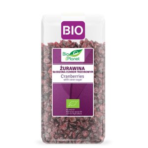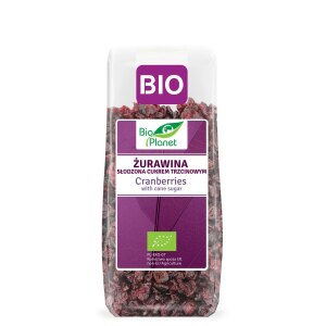 SKŁADNIKIsuszona żurawina cięta* (60%), cukier trzcinowy* (39%), olej słonecznikowy* (*certyfikowany składnik ekologiczny) OPISEkologiczna żurawina cięta słodzona cukrem trzcinowym to doskonała i pożywna samodzielna przekąska. Polecamy również jako dodatek do deserów, płatków śniadaniowych, ciast, lodów oraz jako składnik sosów i potraw mięsnych. WARTOŚĆ ODŻYWCZA W 100 gWartość energetyczna – 1396 kJ / 329 kcalTłuszcz – 0,4…