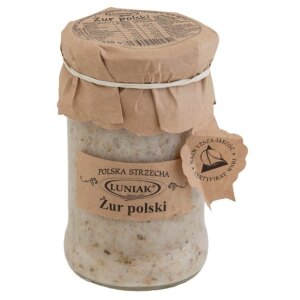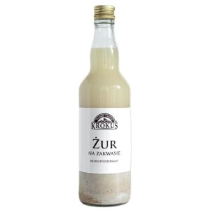 SKŁADNIKIwoda, zakwas chlebowy (mąka ŻYTNIA, woda) – 11,7 %, mąka ŻYTNIA razowa, mąka PSZENNA graham, czosnek. OPISDo produkcji żuru wykorzystano jedynie naturalne składniki umiejętnie połączone z zakwasem chlebowym. Żur nie zawiera substancji konserwujących, sztucznych aromatów, barwników.Produkt niepasteryzowany w ciągłej fermentacji. Podczas otwierania może ulec wzburzeniu. SPOSÓB PRZYGOTOWANIAPrzygotuj 2 – 2,5 litra wywaru (warzywnego lub mięsnego)….