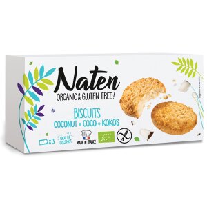 SKŁADNIKImąka ryżowa*, miąższ kokosa tarty* 22 %, margaryna* (olej słonecznikowy*, tłuszcz kakaowy*, woda, emulgator: lecytyny*, sok z cytryny*), cukier trzcinowy*, skrobia kukurydziana*, inulina*, JAJA*, skrobia ziemniaczana*, błonnik akacjowy*, substancja spulchniająca: węglany amonu, emulgator: lecytyny*, sól morska. (*certyfikowany składnik ekologiczny) OPISPyszna przekąska dla każdego, idealnie nadają się do chrupania przy kawie, herbacie lub szklance mleka. WARTOŚĆ…