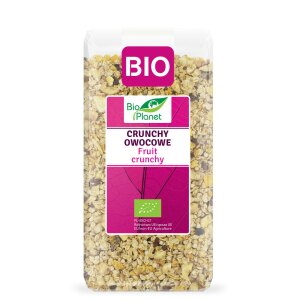 SKŁADNIKIcrunchy* [płatki OWSIANE* 65 %, cukier trzcinowy*, olej kokosowy*, płatki kokosowe*, ekstrudat ryżowy* (mąka ryżowa pełnoziarnista*), sól morska], rodzynki sułtanki* (rodzynki sułtanki* 99,5 %, olej słonecznikowy*), chipsy kokosowe prażone*, płatki kukurydziane pełnoziarniste*, chrupiące płatki ORKISZOWE* (ORKISZ*, sól morska), suszone owoce* (daktyle*, figi*, morele*, śliwki*, mąka ryżowa*), jagody berberysu* (*certyfikowany składnik ekologiczny). OPISCrunchy owocowe to pyszne…