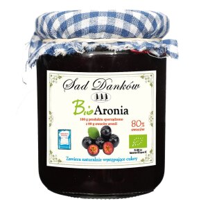 SKŁADNIKIaronia*, koncentrat jabłkowy*, substancja zagęszczająca – pektyna (*certyfikowany składnik ekologiczny) OPIS 100 g produktu sporządzono z 80 g owoców. Produkt pasteryzowany otrzymany przez odszypułkowanie owoców aronii z dodatkiem koncentratu jabłkowego w celu otrzymania odpowiedniego poziomu pH WARTOŚĆ ODŻYWCZA W 100 g Wartość energetyczna – 563 kJ/133 kcal Tłuszcz –