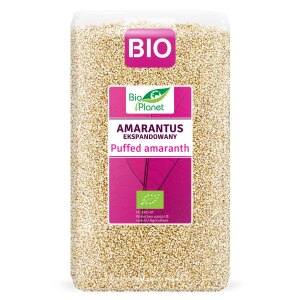 SKŁADNIKIekologiczny amarantus ekspandowany 100 %. OPISEkologiczny amarantus jest jedną z najstarszych i najbardziej pożywnych roślin (pseudozbóż) uprawianych na świecie. Amarantus ekspandowany (popping) jest produktem do bezpośredniego spożycia. Polecamy jako dodatek do jogurtu, MLEKA, napoju roślinnego, deseru, owsianki, sałatki czy zupy krem. Idealny również do naleśników, ciasta, kotletów warzywnych lub jako panierka.Wysoka zawartość błonnika pokarmowego. WARTOŚĆ…