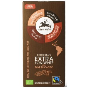SKŁADNIKImiazga kakaowa*, cukier trzcinowy* (17 %), tłuszcz kakaowy*, rozdrobnione prażone ziarna kakaowca* (10 %), wanilia*. Masa kakaowa min. 80 %. (*certyfikowany składnik ekologiczny) WARTOŚĆ ODŻYWCZA W 100 gWartość energetyczna – 2604 kJ / 620 kcal Tłuszcz – 52 g w tym kwasy tłuszczowe nasycone – 32 g Węglowodany – 23 g w tym cukry –…