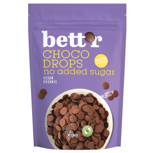 SKŁADNIKI miazga kakaowa, substancja słodząca: erytrytol, tłuszcz kakaowy, inulina, kakao w proszku o obniżonej zawartości tłuszczu, emulgator: lecytyny (ze słonecznika), naturalny aromat waniliowy. Masa kakaowa minimum 60 %. OPISDropsy czekoladowe bez dodatku cukru marki Pięć Przemian to małe krople ciemnej czekolady (min. 60% masy kakaowej), idealne do pieczenia, deserów, granoli czy owsianek. Słodzone erytrytolem, z…