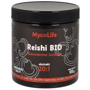 SKŁADNIKI100 % ekologiczny ekstrakt z grzybów Reishi (Lentinula edodes) standaryzowany na zawartość min. 40 % polisacharydów. OPISSuplement diety. SPOSÓB PRZYGOTOWANIAPorcję produktu tj. 1000 mg (1 g), ok. 1/2 łyżeczki rozpuścić w letniej wodzie lub dodać do posiłku. Pić 3 razy dziennie, bezpośrednio po przygotowaniu, najlepiej pół godziny przed posiłkiem. ZALECANE SPOŻYCIE I INNE UWAGINie przekraczać…