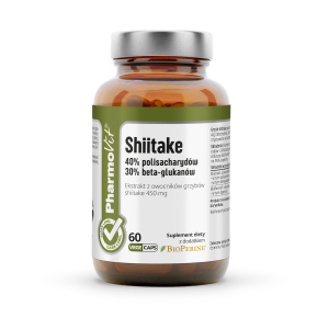 SKŁADNIKIEkstrakt z owocników shiitake standaryzowany na 40 % polisacharydów i 30 % beta-glukanów; kapsułka celulozowa: hydroksypropylometyloceluloza; BioPerine® – ekstrakt z owoców pieprzu czarnego standaryzowany na 95 % piperyny. Składniki w porcji dziennej – 1 kapsułkaEkstrakt z owocników shiitake (Lentinula edodes) – 450 mgw tym polisacharydy – 180 mgw tym beta-glukany 1.3/1.6 – 135 mgBioPerine® ekstrakt…