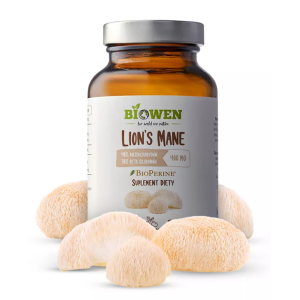 SKŁADNIKI grzyby Lion’s Mane – Soplówka jeżowata (Hericium erinaceus (Bull.) Pers.) ekstrakt z owocników standaryzowany na 40 % polisacharydów i 30 % beta glukanów [DER 25:1], inulina, BioPerine® ekstrakt z owoców pieprzu czarnego standaryzowany na 95 % piperyny, otoczka kapsułki: hydroksypropylometyloceluloza. BioPerine® jest zastrzeżonym znakiem towarowym firmy Sabinsa. Skład w 1 kapsułceGrzyby Lion’s Mane –…
