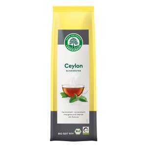 SKŁADNIKIherbata czarna cejlońska* 100 % (*certyfikowany składnik ekologiczny) SPOSÓB PRZYGOTOWANIA Jedną łyżeczkę herbaty zalać szklanką wody o temperaturze ok. 95 (odczekać 1-3 min od momentu wrzenia) i zaparzać przez kilka minut pod przykryciem ZALECANE WARUNKI PRZECHOWYWANIA Przechowywać w suchym miejscu