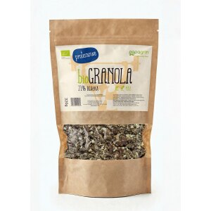 SKŁADNIKI kasza gryczana*, jabłko*, słonecznik*, rodzynki*, siemię lniane*, koncentrat soku jabłkowego*, suszone daktyle*, suszone pestki dyni*, suszone jagody goji* (2,2 %), cynamon*. (*certyfikowany składnik ekologiczny) OPISOdkryj tajemnicę naszego chrupania. Granola z goji to manufakturowy produkt, w którym kaszę gryczaną łączymy z nasionami i suszonymi owocami. Powoli wypiekana, dzięki czemu pozostaje idealnie chrupiąca. Poczuj różnicę, jaką…