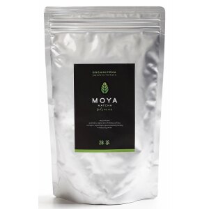 SKŁADNIKIekologiczna zielona herbata matcha. OPISMoya Matcha Kulinarna pochodzi z trzeciego, ostatniego, zbioru liści z herbacianych krzewów, które dojrzewają pod specjalnymi osłonami chroniącymi je od słońca. Właśnie dzięki temu liście przeznaczone na matchę uzyskują wyższą zawartość chlorofilu i teaniny, a także nabierają intensywnie zielonego koloru. Kiedy dojrzeją, są zbierane, delikatnie suszone i ścierane na drobny proszek. Moya Matcha Kulinarna…