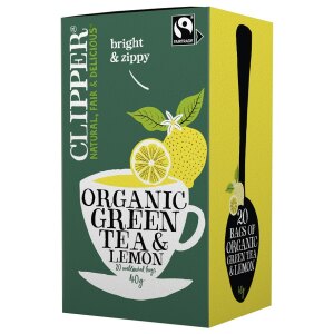 SKŁADNIKI herbata zielona*, naturalny aromat cytrynowy i inne naturalne aromaty* 5 %, skórka z cytryny* 1 % (*certyfikowany składnik ekologiczny) OPIS Składniki Fair Trade 94%. SPOSÓB PRZYGOTOWANIA Saszetkę zalać 250 ml wrzącej wody i zaparzać przez 1-3 minuty. ZALECANE WARUNKI PRZECHOWYWANIA Przechowywać w suchym i chłodnym miejscu.