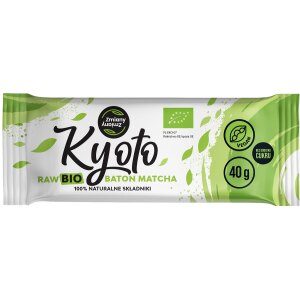 SKŁADNIKI daktyle suszone*, MIGDAŁY*, ORZECHY NERKOWCA*, pestki dyni*, wiórki kokosowe*, matcha* (5 %), chia* – nasiona szałwii hiszpańskiej (Salvia hispanica), quinoa ekspandowana (komosa ryżowa)*. (*certyfikowany składnik ekologiczny) OPIS Kyoto BIO to baton inspirowany japońską filozofią równowagi i czystej energii. Połączenie naturalnej słodyczy daktyli, orzechów, superfoods i matchy daje delikatnie pobudzający, a jednocześnie stabilny efekt – bez nagłych spadków energii.To idealny…